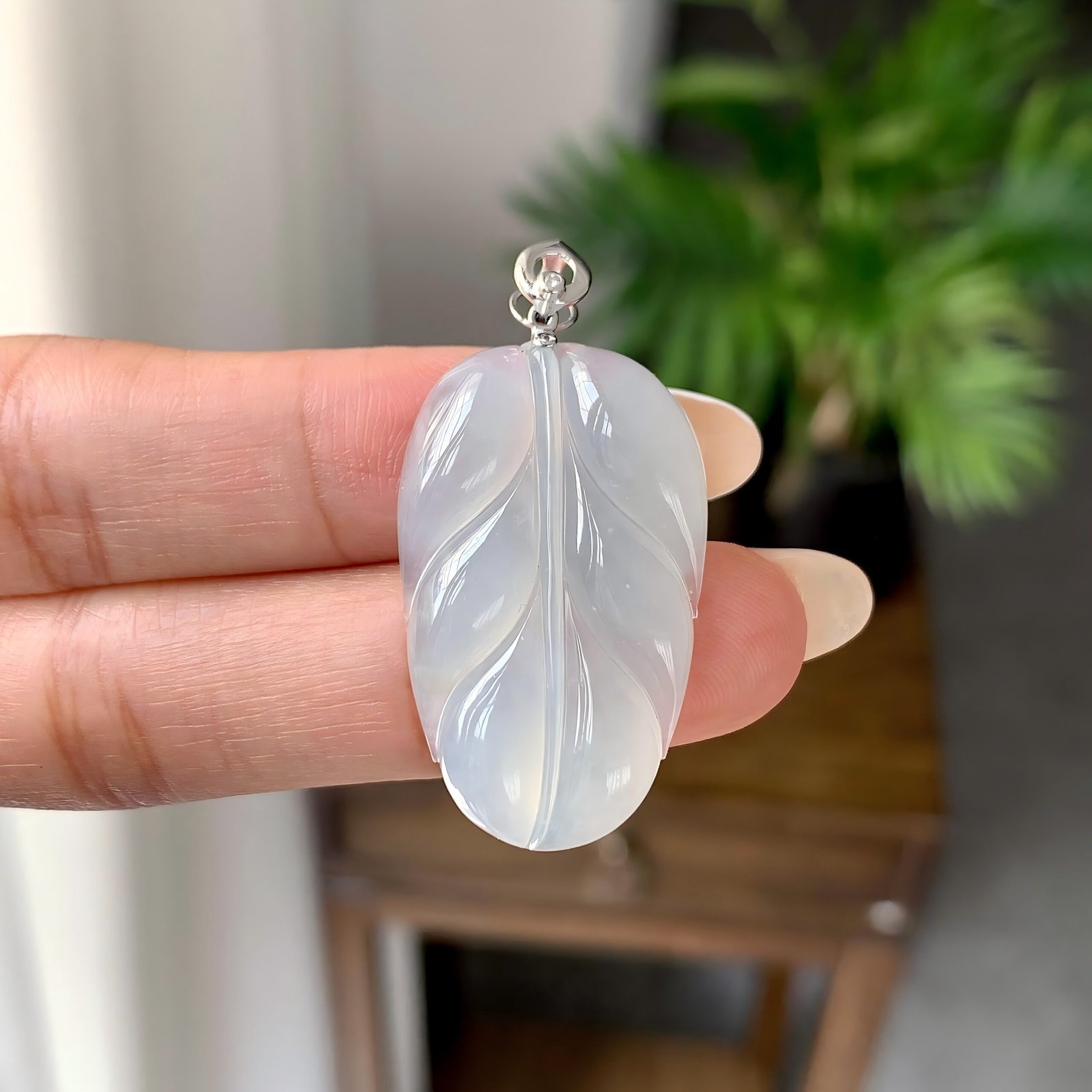 You're viewing: 18k金糯冰種無色葉子吊墜 $336.17