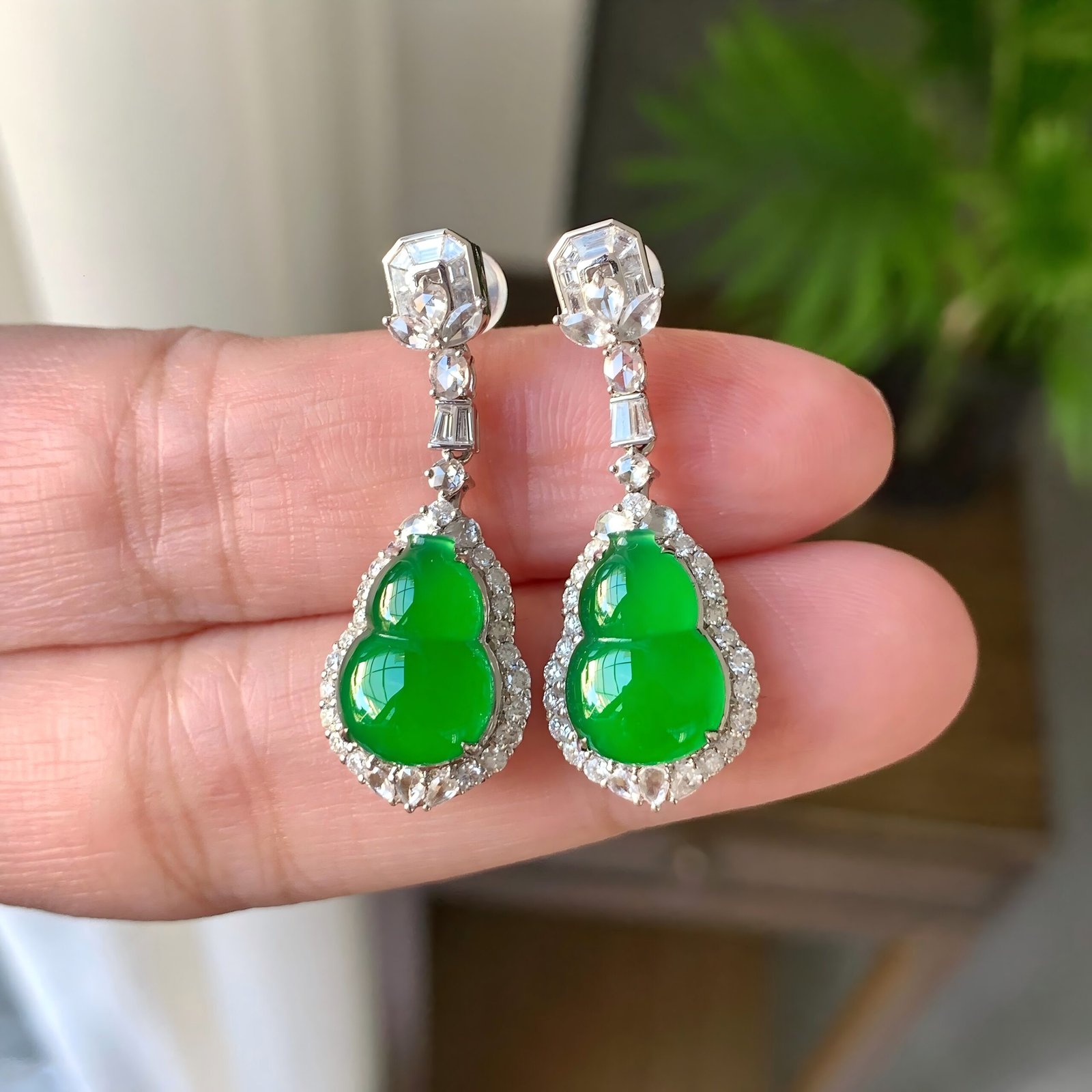 翡翠, 耳飾/胸飾/頭飾, 糯冰種, 滿綠, 耳墜/耳釘